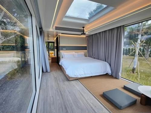 Apple Cabin, med sin rundade båge och prefabricerade struktur, kan inte bara användas ensam, utan kan också överlagras av två eller flera monomerer för att skapa ett kreativt hus med oändliga möjligheter. Tillhandahålla en bekväm lösning för mobila hem som inte kräver någon grund. Oavsett om det är ett fritidshus, bostadsområde eller kommersiellt utrymme, kan du anpassa storlek och stil för att möta dina individuella behov, distribuera snabbt, minska utrymmesbegränsningar och ge obegränsad kreativitet och bekvämlighet till det moderna livet.